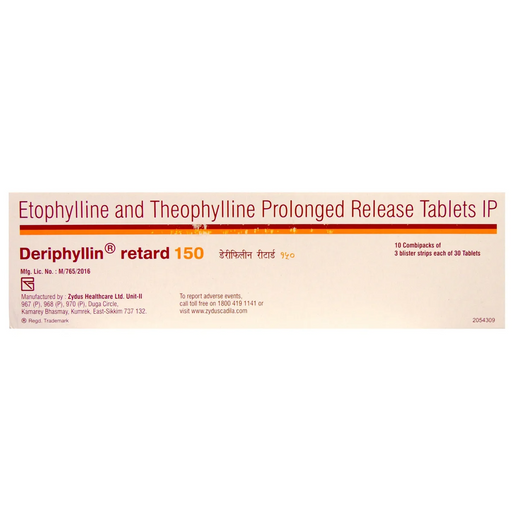 Deriphyllin RE 150 Tablet is a prescription medicine used in the management of asthma and chronic obstructive pulmonary disease (COPD). It helps im...