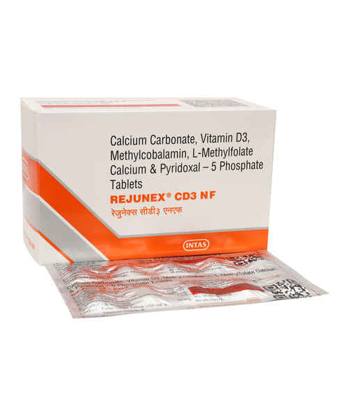 Rejunex CD3 NF Tablet is a nutritional supplement designed to support bone health, nerve function, and overall wellness. It helps maintain healthy ...